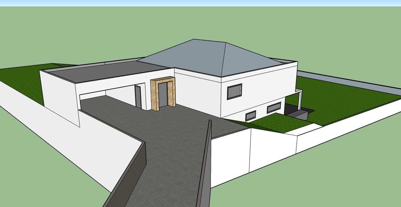 - Die Eingangstür ist nicht im Grundriss eingezeichnet. Sie befindet sich im oberen Geschoss an der Wand links neben der Zugangstür der Garage
