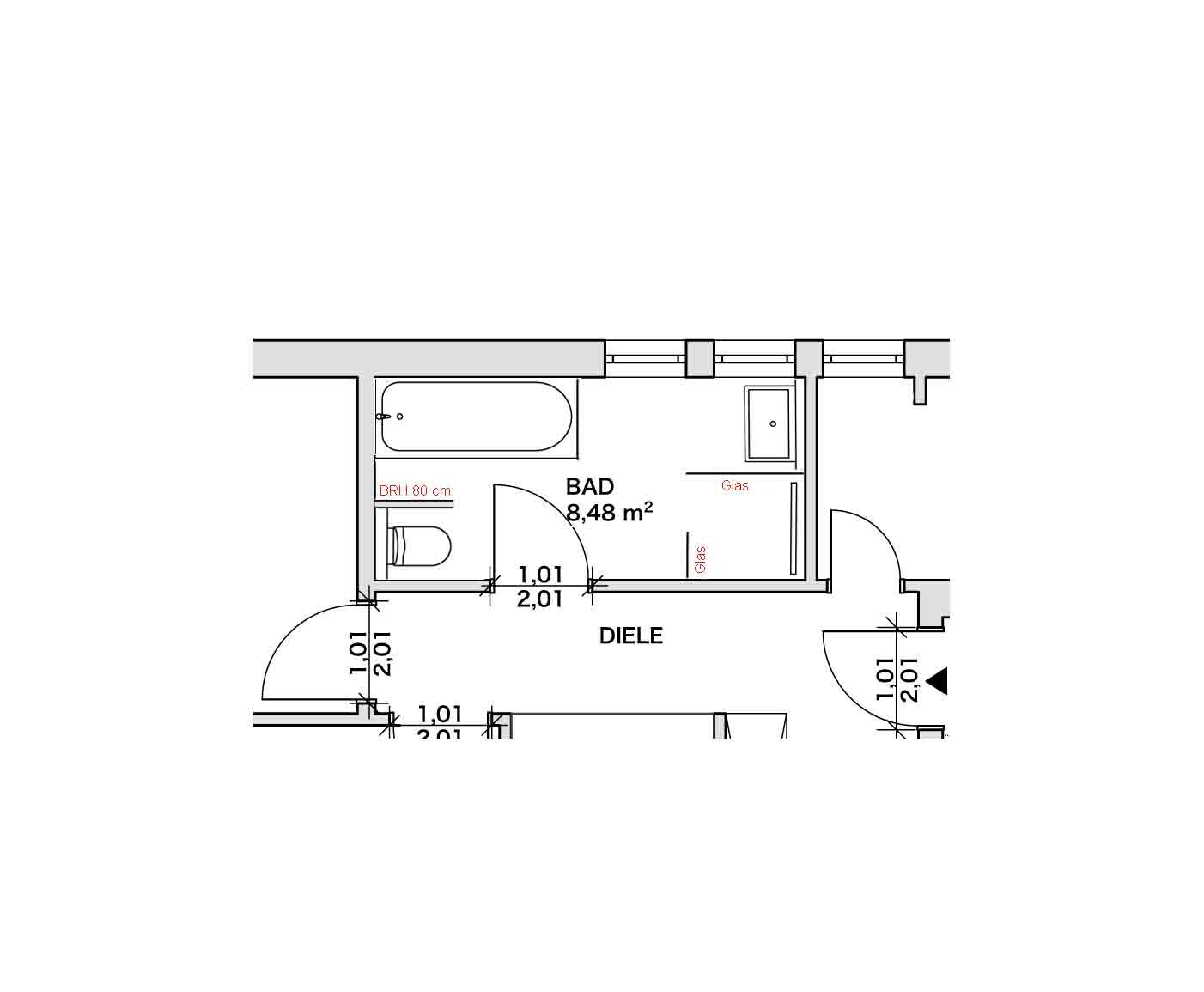 MarcWen schrieb:Tendenziell würde ich zum 2. Lösungsansatz tendieren; wirkt gebaut und auf den ersten Blick offen und einladend, trotz vergleichsweise kleinem Bad. Allerdings ist aus meiner Sicht in beiden Entwürfen die Platzierung des WT ungünstig gewählt - das Licht fällt zwar seitlich auf den WT, aber imho zu wenig; *ich* käme damit nicht klar, wenn seitlich, dann konsequent.