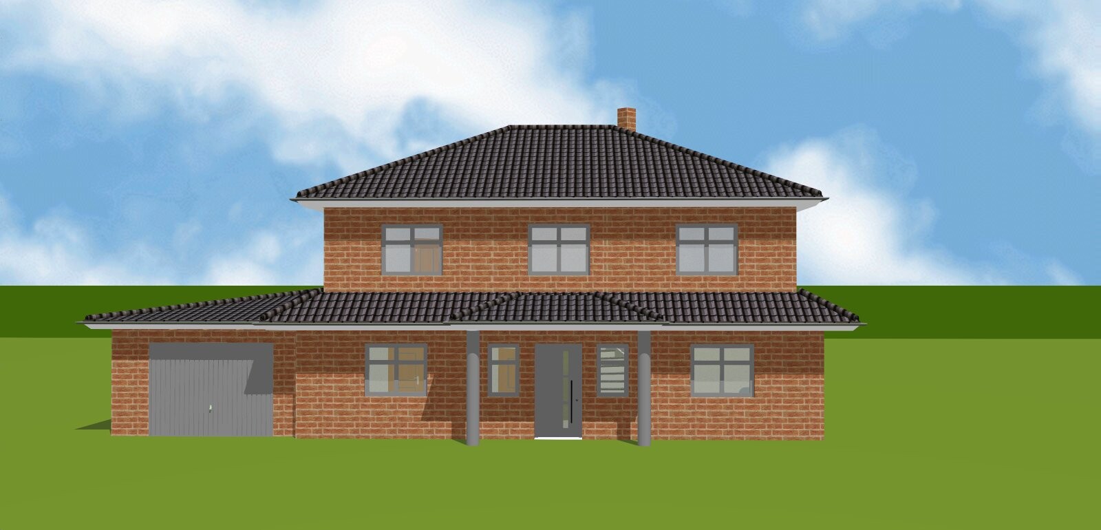 Hier eine Referenz zur Hausbauweise (wir haben allerdings ein Flachdach auf der Garage, keine Pfannen!):