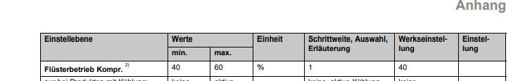 Regelt die Anlage dann um 40-60 % runter oder läuft sie nur in dem eingestellten Prozentbereich,wenn der Flüsternbetrieb aktiviert ist ?Verstehe ich nicht. Aber nochmal: Wenn ich 60 % Flüsterbetrieb (Maximum) einstelle in den Einstellungen, dann arbeitet der Kompressor bei aktiviertem Flüsterbetrieb nur noch von 25 % - 40 % Modulation.