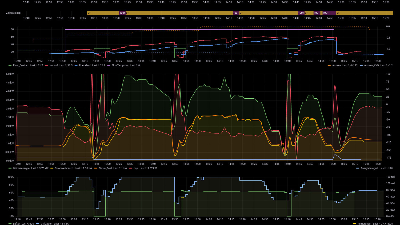 Welche AZ habt ihr bei der Warmwasser Bereitung? Ich habe um die 0°C und 52°C bzw max 57°C Vorlauf nur 2 bis 2,5...