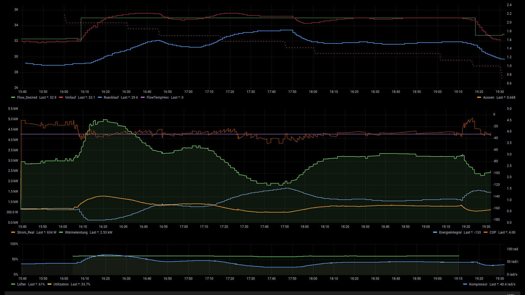Wie läuft das bei Euch? Gibt es einen direkten Zusammenhang zwischen Kompressor und Vorlauftemperatur? Oder läuft der Kompressor zwar mit 50%, die Vorlauftemperatur wird aber nur schrittweise angehoben und nicht direkt auf 55 Grad?