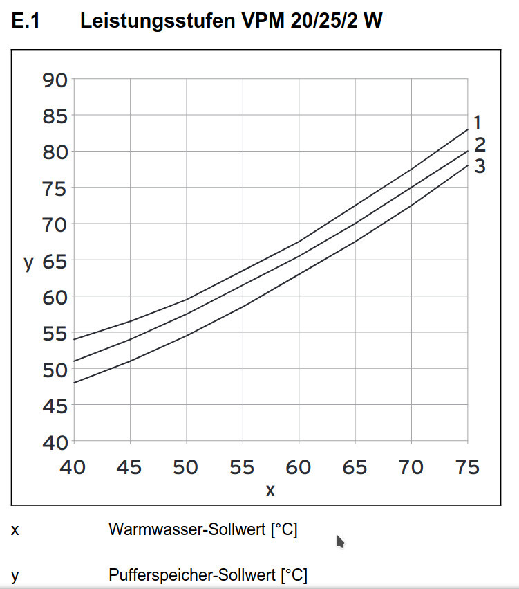 Ich wende mich jetzt mal HILFESUCHEND an die Mitstreiter mit Trinkwasserstation. Ich hatte mein Problem ja schon mal erklärt. Kurzum: Man stellt die Warmwasser Wunschtemperatur ein. Der Speicher wird immer nur genau auf die Warmwasser Wunschtemperatur hochgeladen, egal ob Leistungsstufe 1 oder 3. Eigentlich müsste die Speicher Solltemp höher liegen, siehe hier: