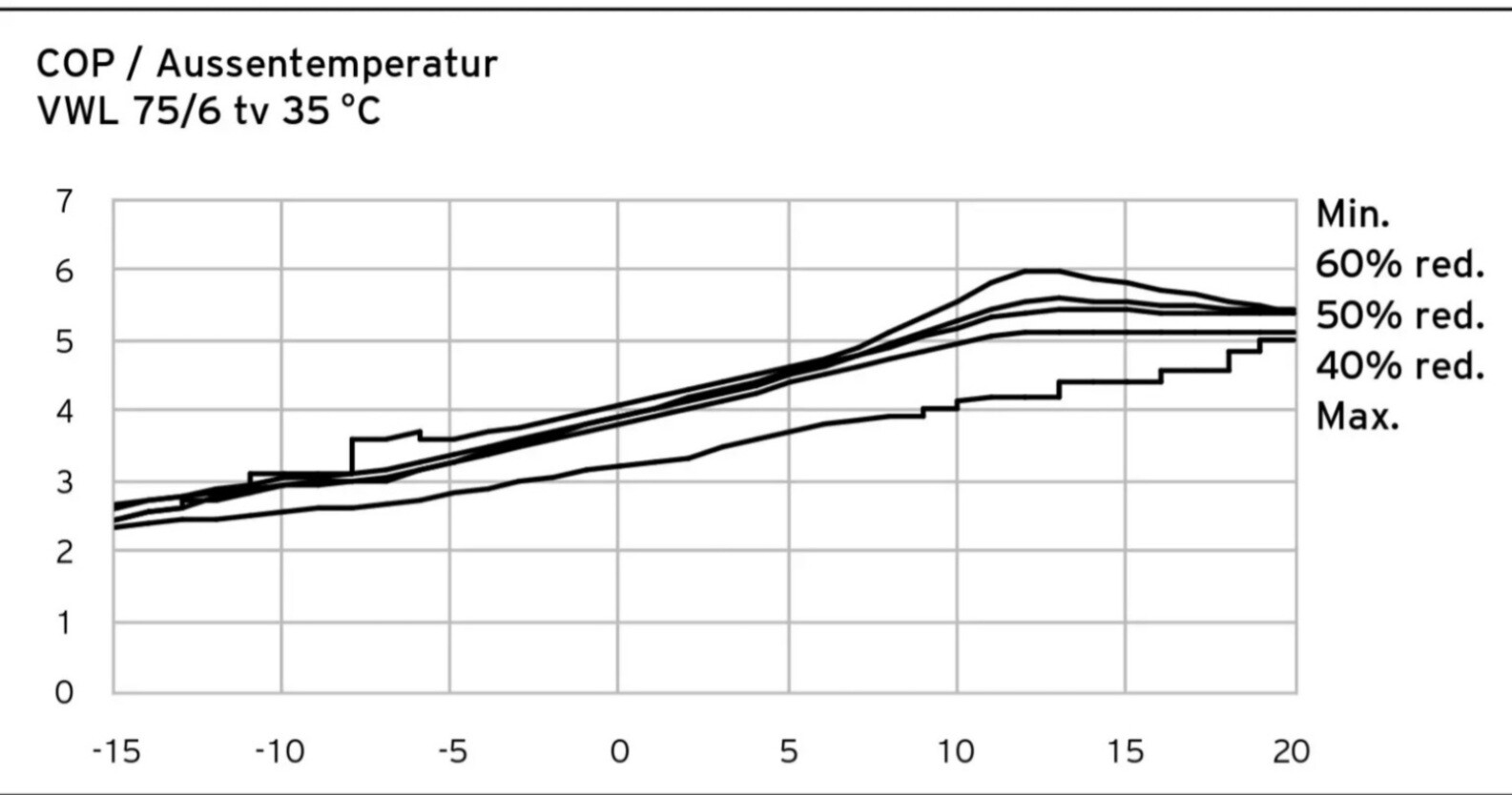 Wenn die Temperaturunterschiede zwischen Tag und Nacht groß sind, funktioniert das leider nicht mehr. In den letzten beiden Nächten hatten wir Minusgrade, tagsüber war es bis 11 Grad warm. Heute morgen war es einfach zu warm im Haus. Da es in den nächsten Tagen eher mild werden soll habe ich AT Durchheizen jetzt auf -4 Grad gestellt. Neverending Story...Mit dem Durchheizen schaffst du aufgrund der niedrigen VLT gegenügend meiner Variante mit dem einen Takt und damit höherer VLT eine bessere AZ. Diesen Fakt kann man nicht weg diskutieren. ABER. Wenn die Tagestemperaturen solche Unterschiede zwischen Tag und Nacht zeigen, dann wird der Vorteil der besseren AZ wieder zunichte gemacht. Laut dem Vaillant-Dokument ist der COP je 5 K um 0,5 besser/schlechter. Bei 10 K zeigt die AZ den Wert um 1 besser oder schlechter.