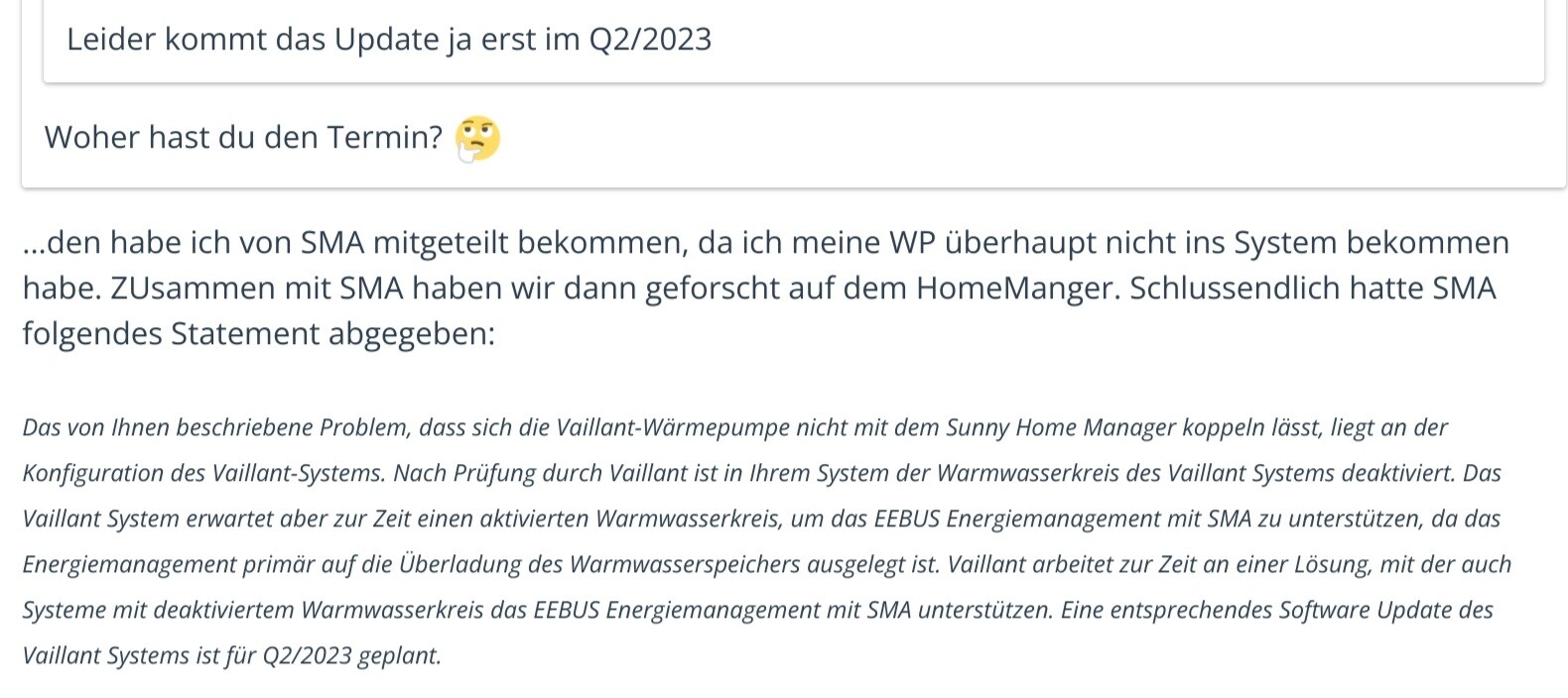 ...es geht um die SMA Software. Diese hat einige Daten von Vaillant integriert. Und dort bessert Vaillant nach. Du bekommst kein neues Vaillant Update.