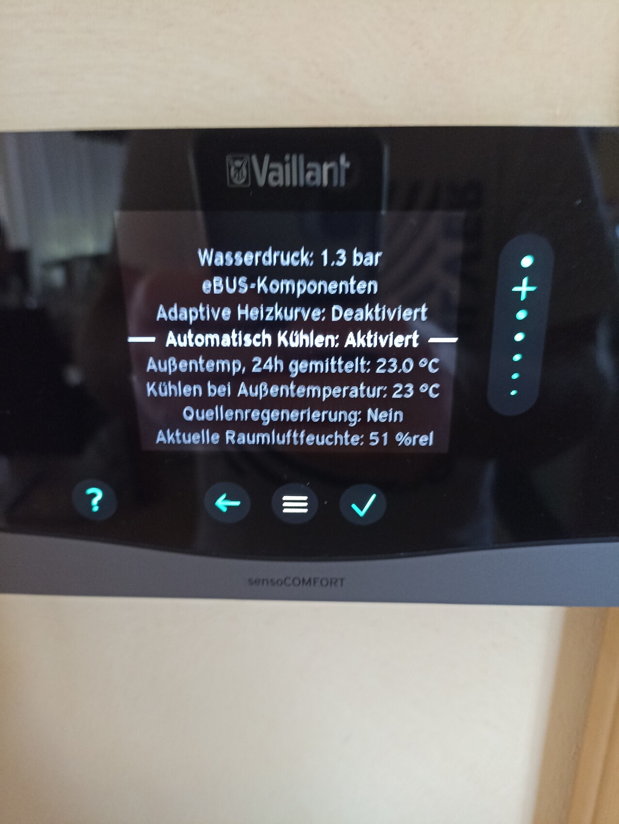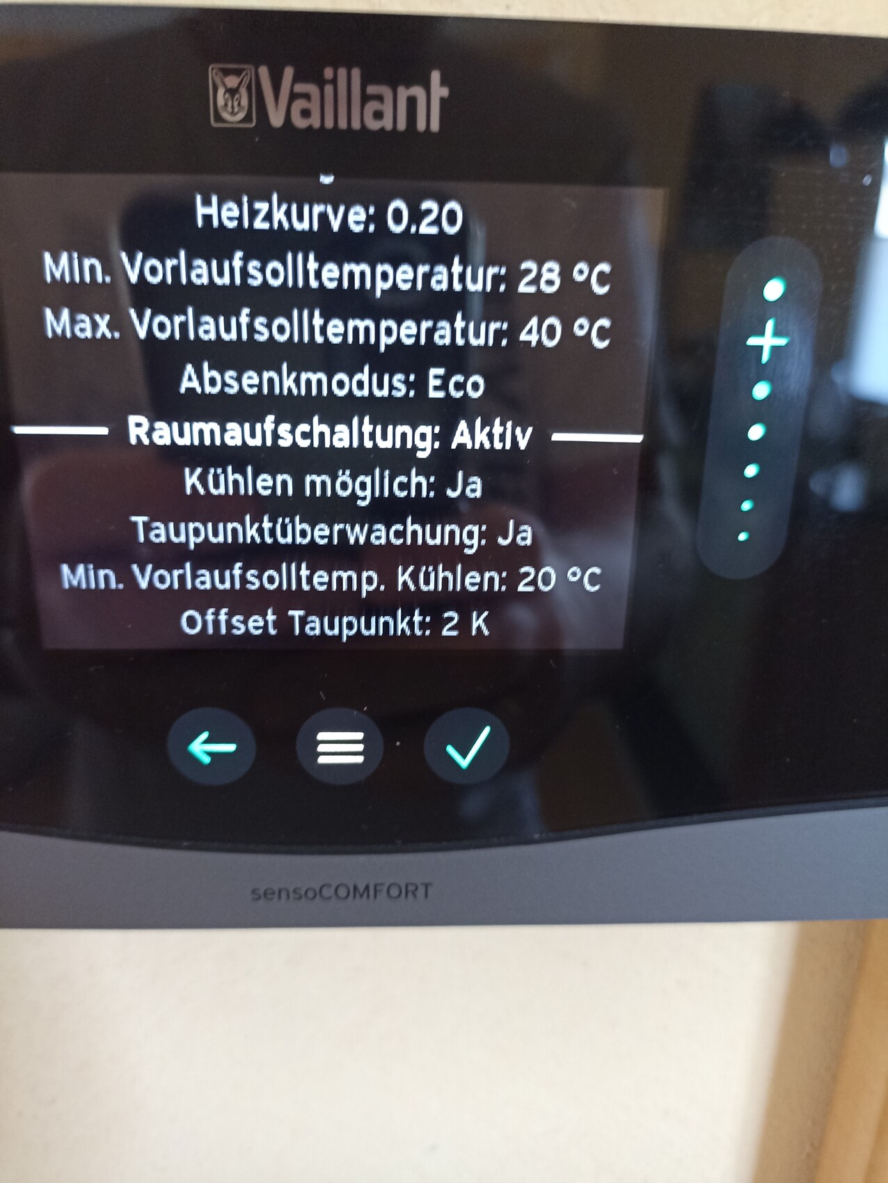 Ist es bei euch auch so, dass die eingestellte und gemessene Raumtemperatur, sowei Außentemperatur keinen Effekt hat, sondern nur das "Min Vorlauf Kühlen" direkt die Vorlaufsolltemperatur setzt?Zieltemperatur 22,5°C, Minimaltemperatur 19°C. Bislang habe ich nie eine andere Zahl als 19°C im Display als Soll-Vorlauftemperatur gesehen.