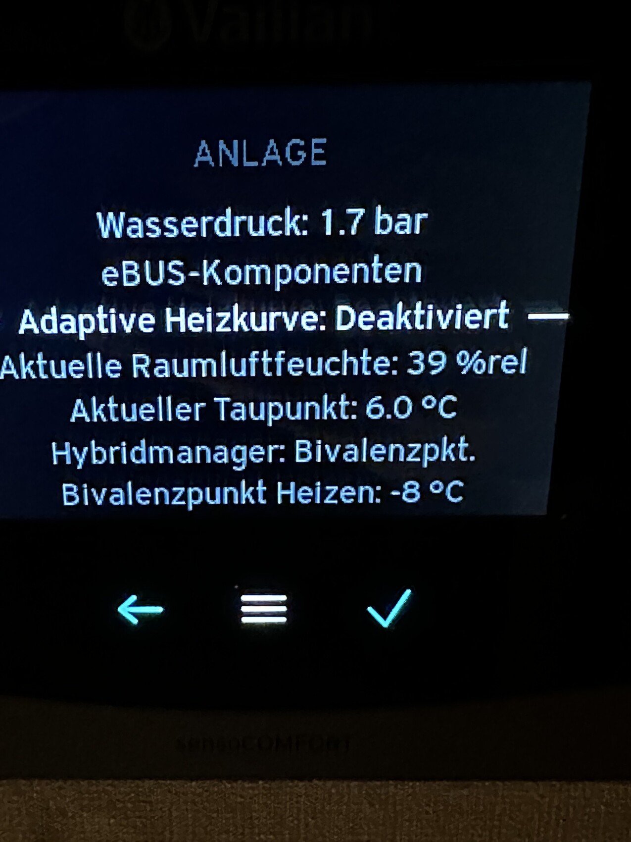 Wichtig: Raumaufschaltung inaktiv - das Baby muss sich auf Basis der Außentemperatur selber kümmern.