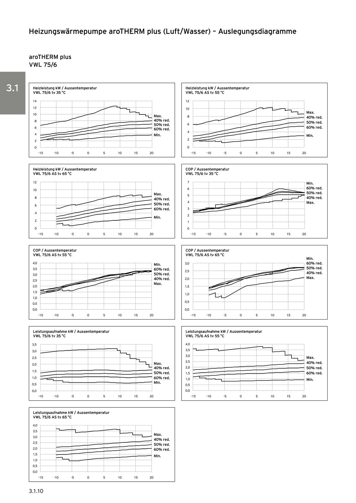 Dann war gestern so ein Tag und heute ditches ähnlich. Null Grad und feucht.Den Bivalenz bestimmst Du geometrisch durch Ermittlung des Schnittpunkts zwischen der Heizlastgeraden Deines Hauses mit der Leistungskurve der Wärmepumpe über die Temperatur. Die Heizlastgerade läuft durch die beiden Punkte 20 Grad/0 kW und NAT/Heizlast, also bei Dir -9 Grad/8,5 kW. Wenn Du mehr als 20 Grad RT haben willst, musst Du den ersten Punkt anpassen, also z.B. 21 Grad/0 kW aber das macht jetzt nicht die Welt aus. Die Leistungskurve der Arotherm Plus bekommst Du aus dem Internet. Aus den verschiedenen Diagrammen muss Du Dir die 75er raussuchen und dann die richtige Vorlauftemperatur auswählen. Meist findest Du nur tv = 35 und tv = 55 Grad (siehe Anhang). Du erkennst dann auch, dass die Kurve der Maximalleistung mit abnehmender Vorlauf Temp steigt, wie oben vom Kollegen angesprochen. Aber das macht auch keinen Megaunterschied aus. Außerdem habe ich Dir ein Beispiel einer anderen Anlage zur Veranschaulichung angehängt. Kannst Du alles im Internet nachlesen, z.B. bei TGA Fachplaner.