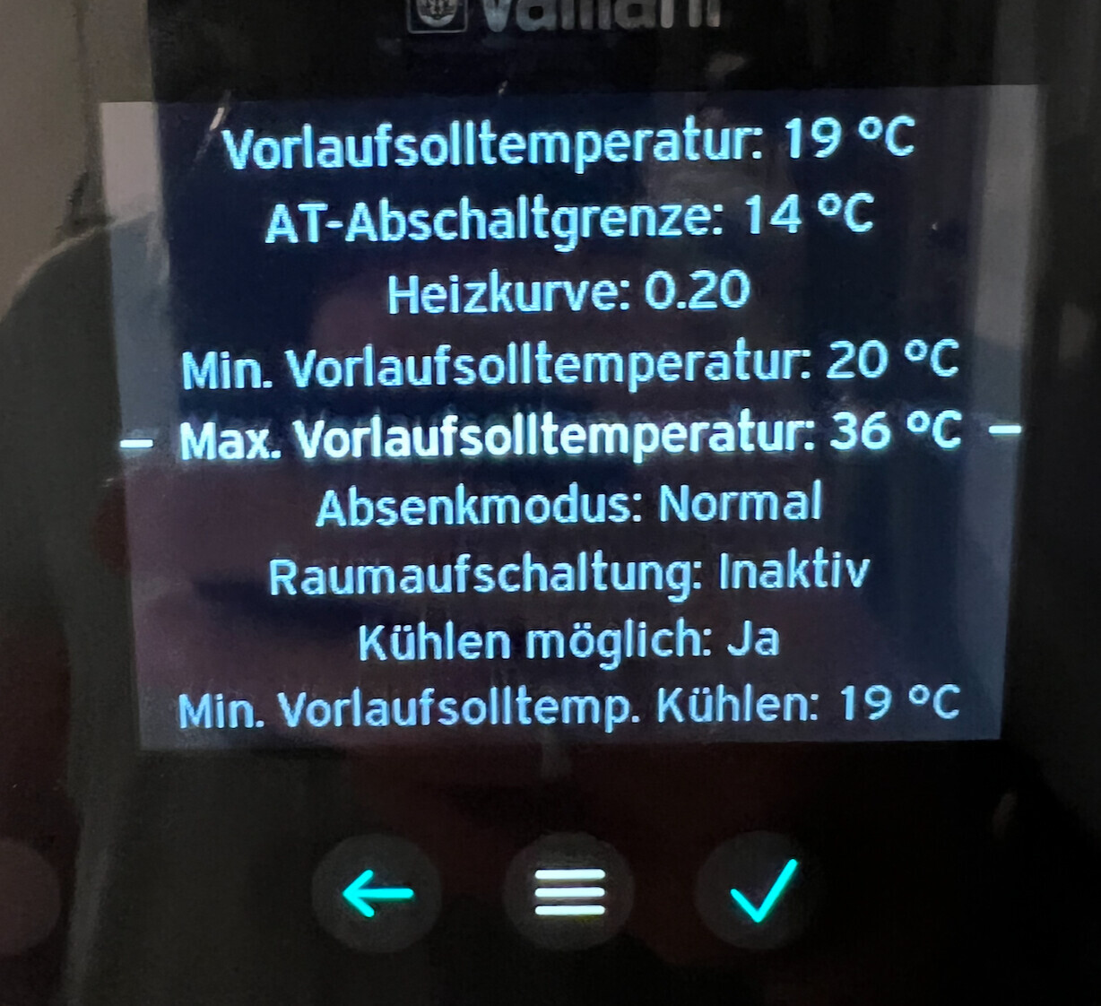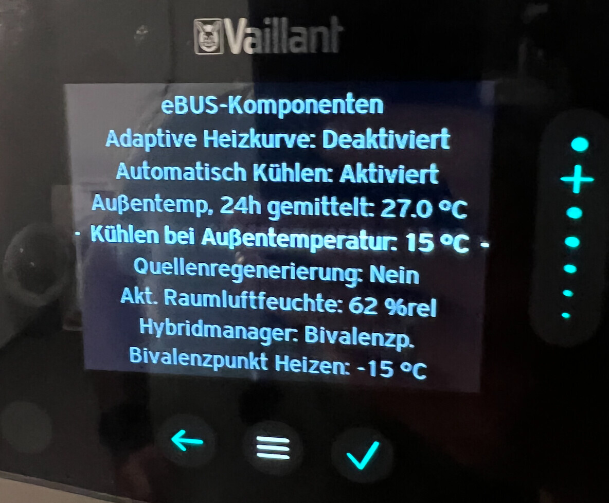 Zweite Frage: ich kann bislang keine "Kühlkurve" erkennen. Vorlauf-Soll ist immer auf 19°C bislang. Kann es sein, dass Vaillant nicht die aktuell gemessene Temperatur für die Kühlkurve anzieht, sondern die über 24h gemittelte Temperatur?