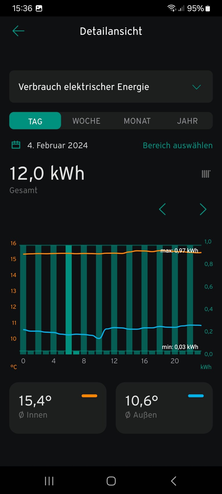 Im Beispiel immer knapp 1 kWh als Maximum und fast 0 kWh als Minimum.
