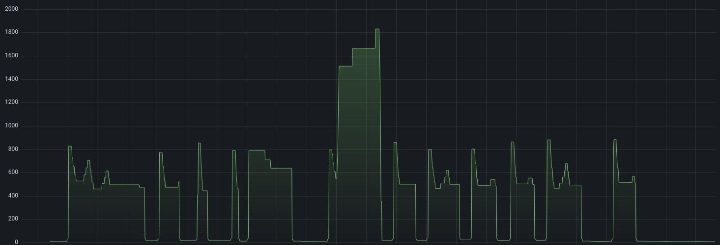 Von wie vielen Starts je Tag reden wir hier denn? Bzw. hast du mal die Anzahl der Starts für einen Zeitraum?Ah jo, blöd, habe die Zeiten nicht mit auf den Grafiken.Untere Grafik ist 8-19Uhr, mit 12 Takten.