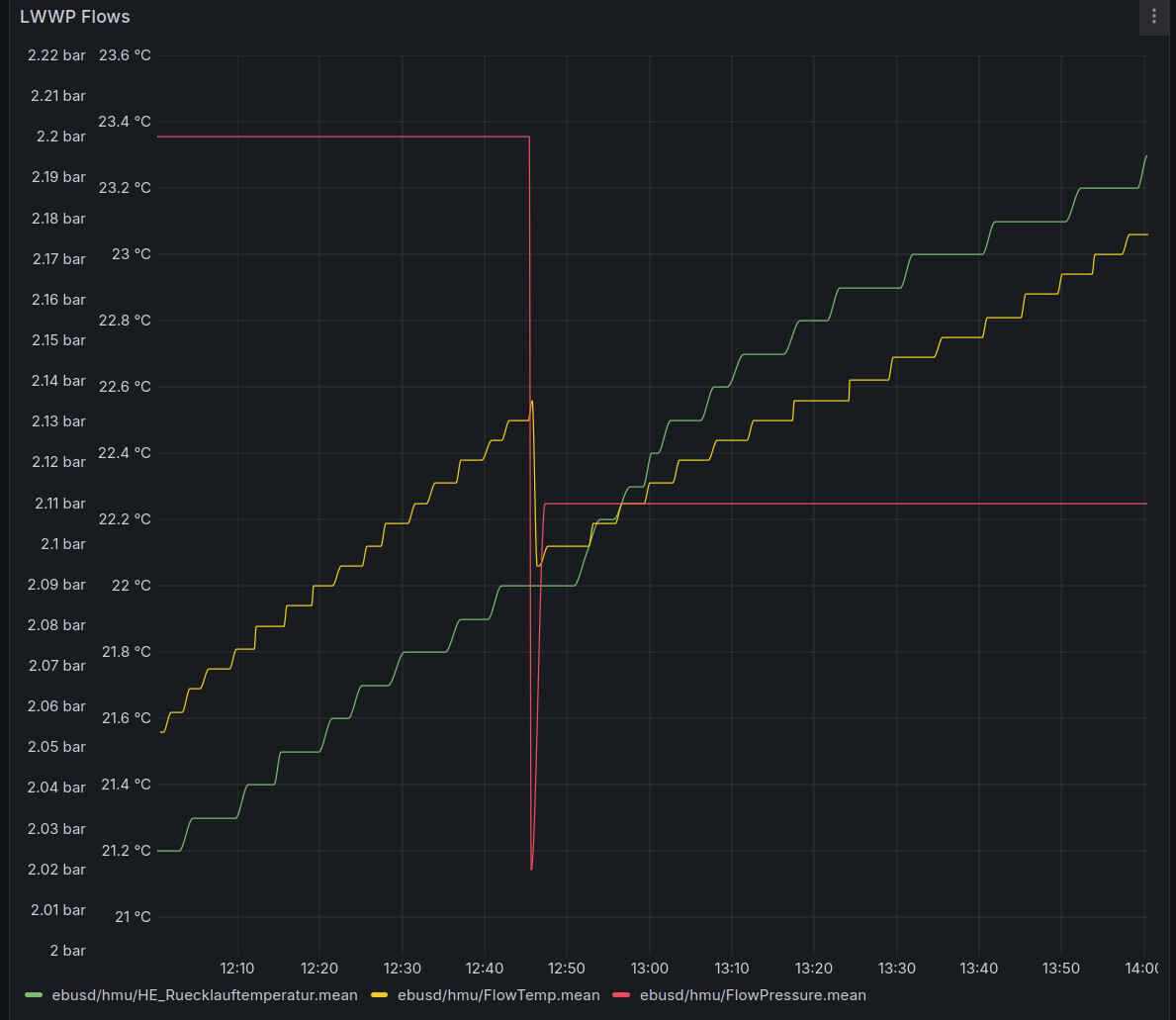 Läuft die Pumpe nicht, ist die gemessene Temperatur mehr oder weniger zufällig.Dann schreib doch bitte mal, wie du über einen längeren Zeitraum die Wasserpumpe (als Heizungspumpe) ohne Kompressorfunktion laufen lässt.