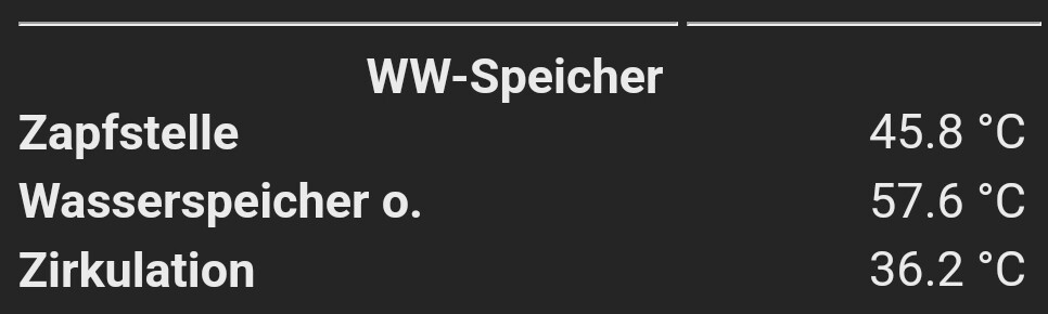 - Ist die Temperatur von heute Morgen am Vaillant warm Wassersensor vom Wasserspeicher der ca. 30cm über dem Fußboden sitzt (Sunex 300L Speicher)