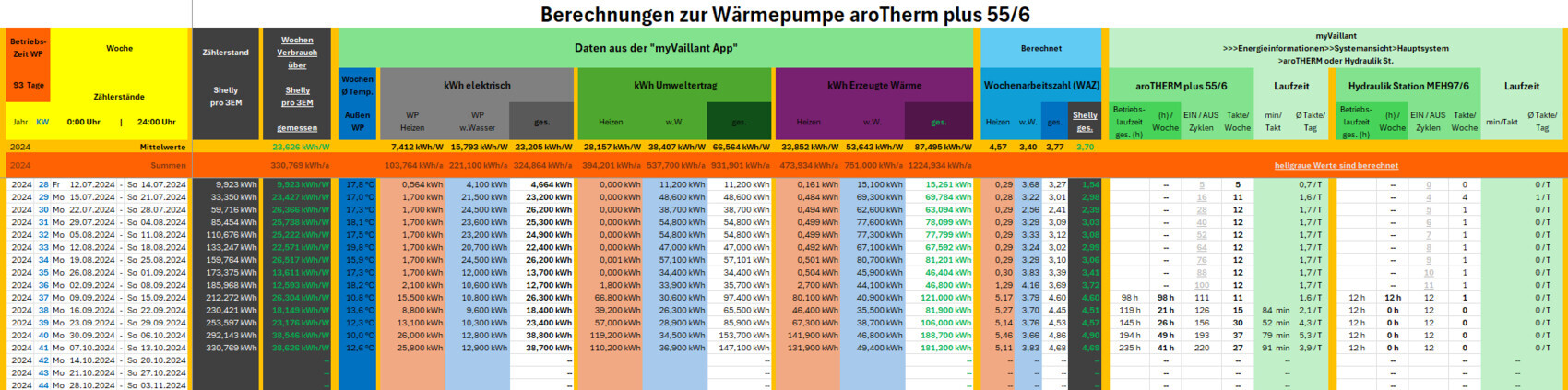 Leistung und Betriebsstunden gibt es bei mir leider nicht. Vielleicht liegt es an der Softwareversion der Wärmepumpe. Ich habe noch Version 06.07, leider auch deshalb noch die falsche EI-Berechnung.