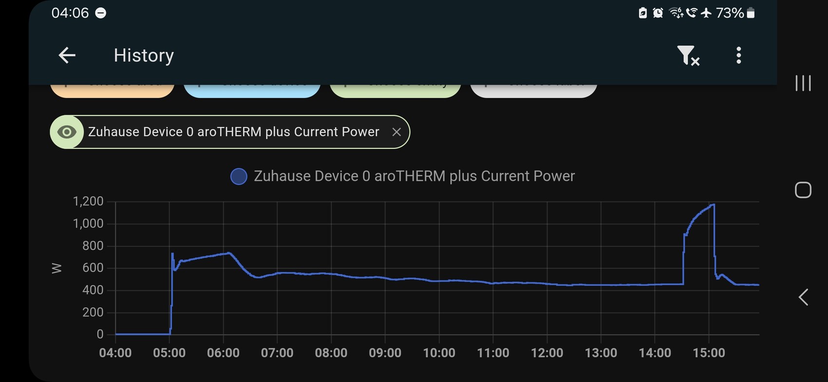 Das mit den Takten habe ich auch, ca. 1 Takt die Stunde bei über 10°C AT. Das mit dem Flüsterbetieb bei diesen Temperaturen muss ich mir auch mal anschauen ob es was bringt.Ja, wenn das Haus bei durchnittlich 10 Grad z B nur 1kW braucht, ist die minimale Leistung von 2kW halt zu viel, deshalb ist die Nachtabschaltung fürs Takten schon mal positiv. Das EI baut sich gut auf und das geht beim Anlaufen der Wärmepumpe sogar noch weiter, bis der Vorlauf den Sollwert erreicht (bei uns gestern 1h20) und dann anfangen kann es abzubauen.