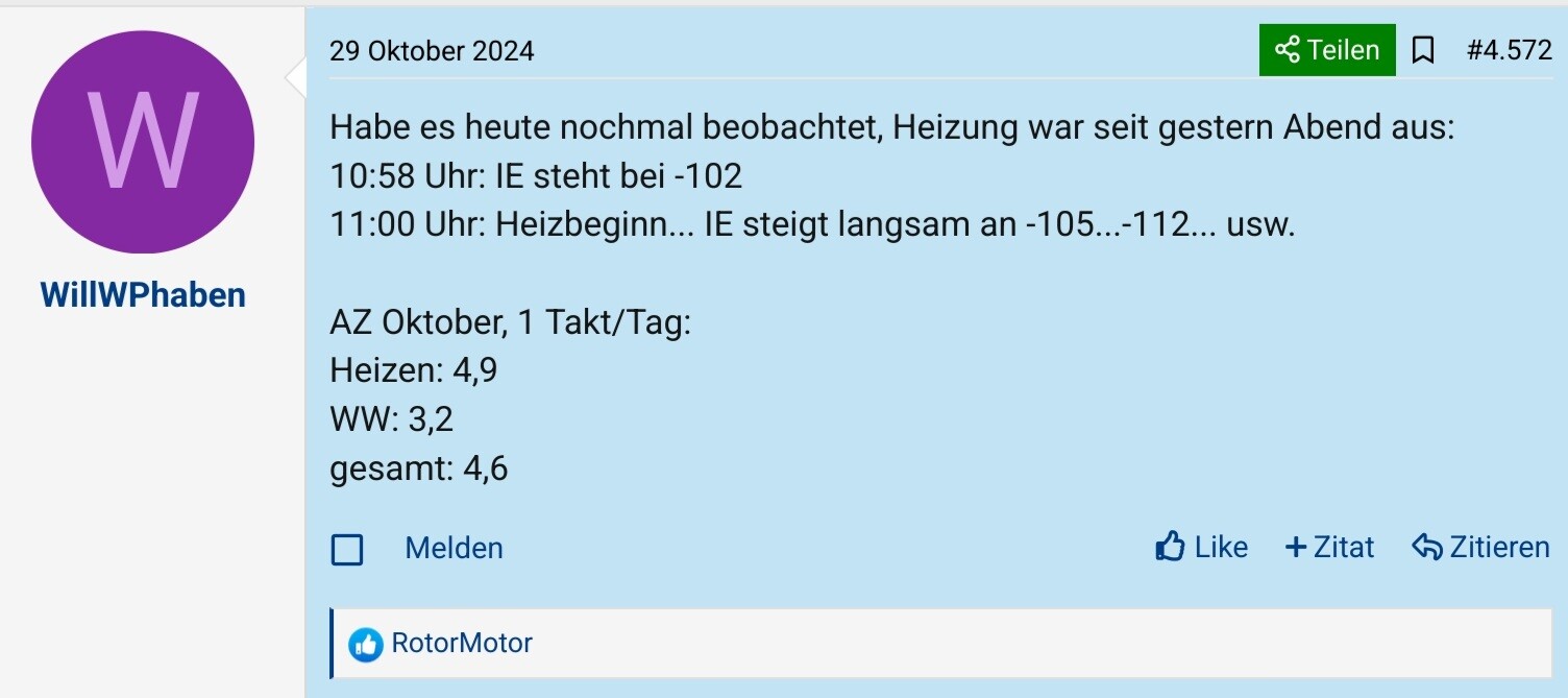 Hier hast du noch etwas anderes geschriebenNö, auch dort habe ich davon berichtet, dass das IE bereits vor Heizstart ungleich -100 war - wie bei meierchen006 auch.Hausbau55EE07.11.24 20:58