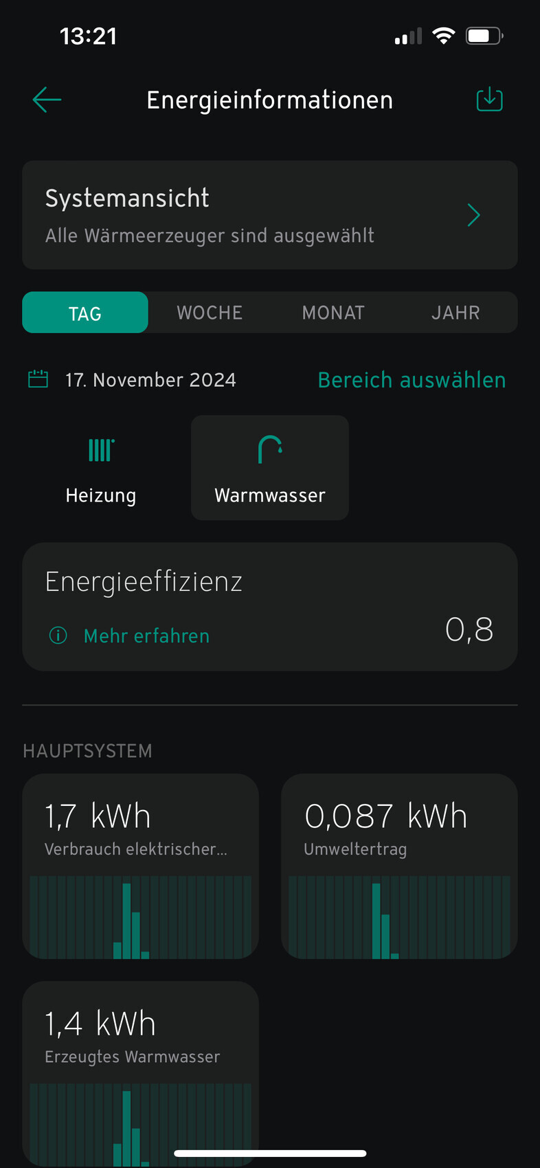 Heizt ihr das Warmwasser mit Heizstab?Ich hoffe nicht. Bivalenzpunkt warmwasser ist auf -10 grad.