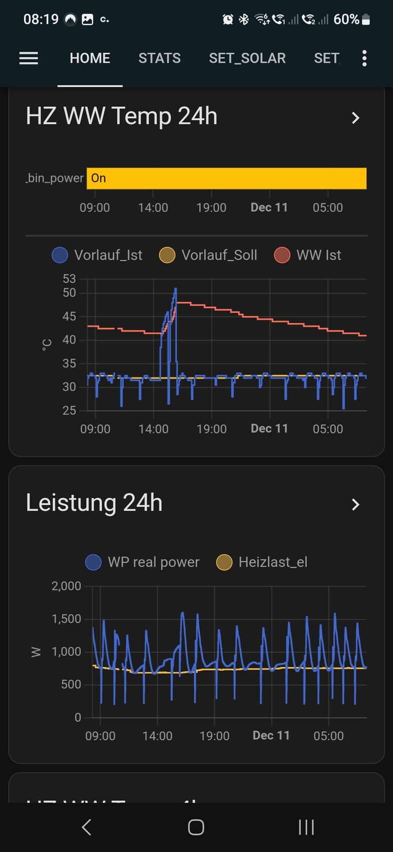 Ohne ebusd gibt es keine Möglichkeit zu sehen wann bzw. wie oft die Wärmepumpe abtaut oder?Doch, das geht. Man kann über die MyPyllant Erweiterung in Home Assistant auf viele Daten zugreifen u. a. Vorlauf-Ist-Temperatur und je nach Softwareversion auch auf Zyklen und Leistung. Das läuft dann über eine API zu den Daten, die die App auch anzeigt. Voraussetzung ist das Internetmodul und der Account bei Vaillant. Ebusd braucht man dann nicht mehr (zumindest dafür nicht, ans Energieintegral kommt man aber nicht ran), damit ist auch kein Anschluss auf Hardwareebene erforderlich und somit keine Diskussion wegen. Gewährleistung.In Home Assistant lässt sich dann sowas darstellen: