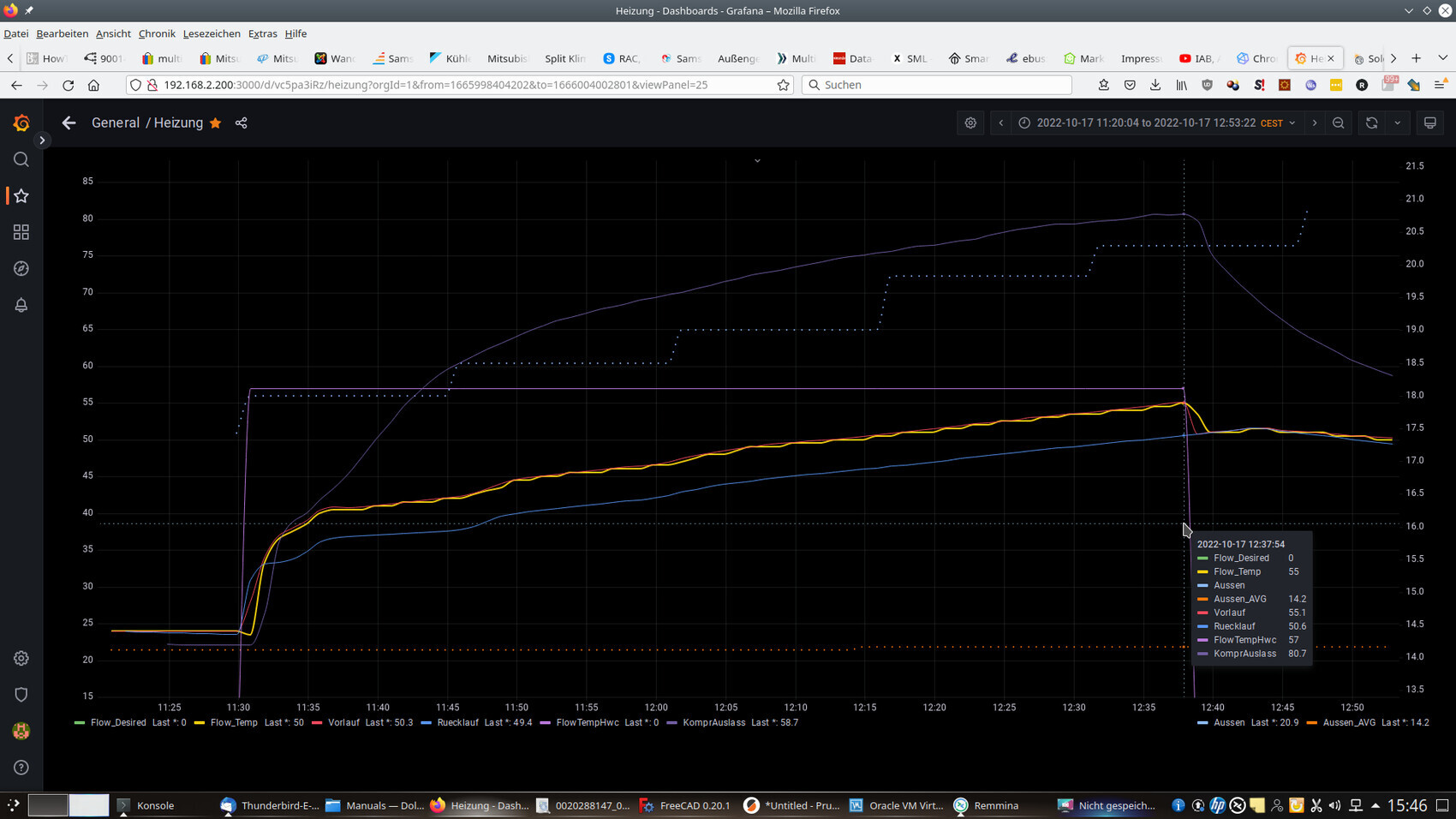 Irgendwie müssen wir unterschiedliche Einstellungen haben. Beide VLT sind in etwa gleich, nur meine Zieltemperatur ist mit 46° deutlich niedriger als bei dir mit 52°.Mir geht es um diese Differenz. Die VLT "läuft" bei mir immer 9 bis 10 Grad über der Speichertemperatur. Bei Cyberthom sind VLT und Warmwasser-Temp weitestgehend identisch.