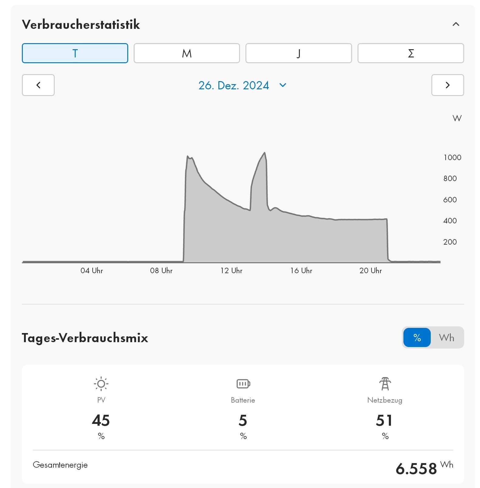 Schau Dir mal mein gestriges Abtaugemetzel an: Fast jeder Peak nach unten ist ein Abtauvorgang (stammt aus dem Dashboard meiner SMA Photovoltaikanlage), Temperaturen zwischen -4 und +1 Grad. Kann halt je nach Luftfeuchtigkeit vorkommen. Machen wir uns nix vor: Eine Luftwärmepumpe im Temperaturbereich von ca. -5 und +4 Grad ist wegen des erforderlichen Enteisens ein Krücke. Mit entsprechender Delle in der Arbeitszahl. Aber immer noch besser als viele Alternativen...