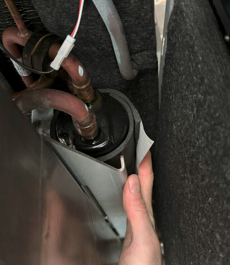 Da hast Du aber richtig viel demontiert! Ich war da fauler, musste aber sicher mehr fummeln. Und ja, den unteren Abschluss bekommt man eigentlich nur im Werk wĂ€hrend der Erstmontage rein, hinterher unmöglich. WĂŒrde mich interessieren, was Vaillant davon abhĂ€lt, das Kit serienmĂ€Ăig zu verbauenâŠ