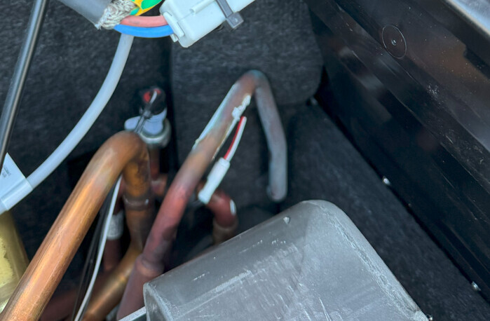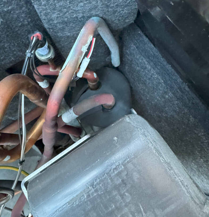 Ich habe dann die Wärmepumpe aufgemacht. Kältemittelsammler ist komplett unauffällig.
