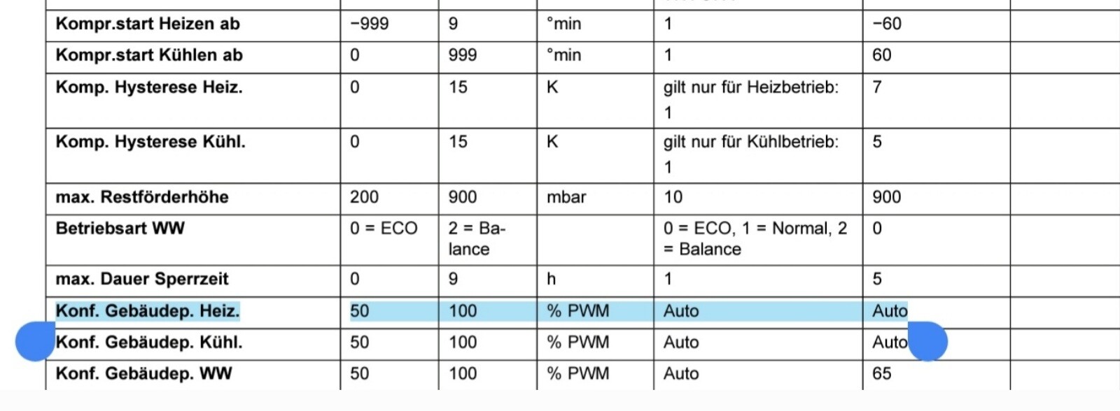 Kann ja keiner ahnen, dass "Konf. Gebäudep. Heiz. " die Heizkreis-Pumpenleistung regelt. 😀