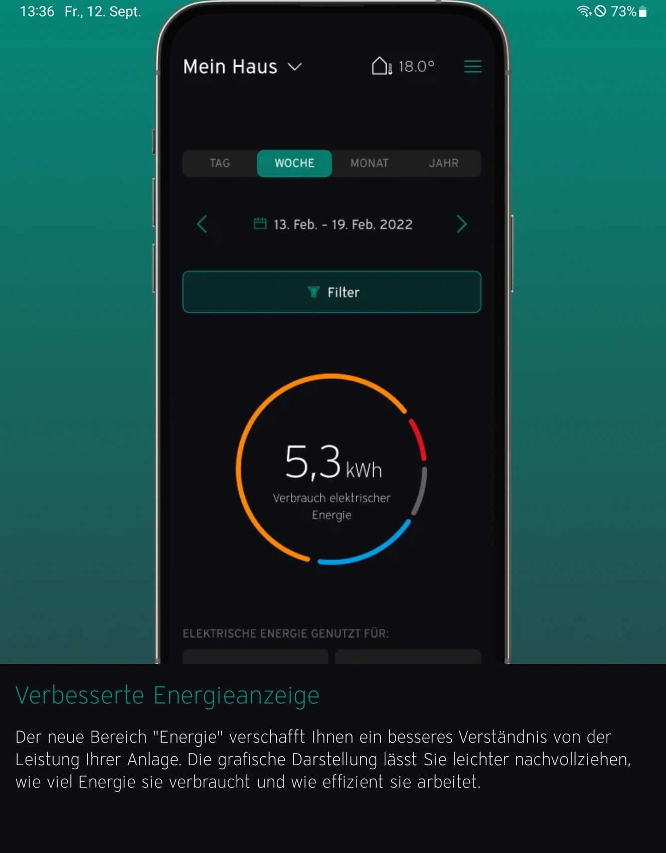 Es gibt eine neue App-Version 3.30 mit besserer Darstellung EnergieAuf dem Tablet leider ziemlich umständlich zu bedienen, weil die Statusleiste vom Android die untere Menüleiste der App halb überdeckt. Das war in der vorherigen Version besser gelöst.