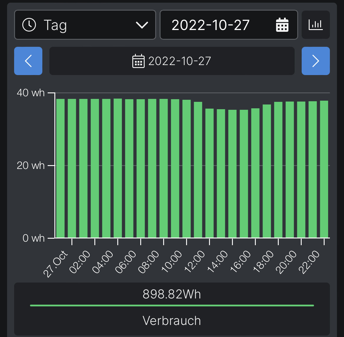 Ich frage mich, warum die Klappe nicht viel früher aufgeht bzw. später schließt? In unseren Wohnräumen ist es eigentlich nie unter 22°C. Tmax am 27. soll lt. Wetterstration bei 21°C gelegen haben. Eigentlich müsste die Klappe auf daueroffen gestanden haben, bis auf die eingestellte maximale Temperaturdifferenz.