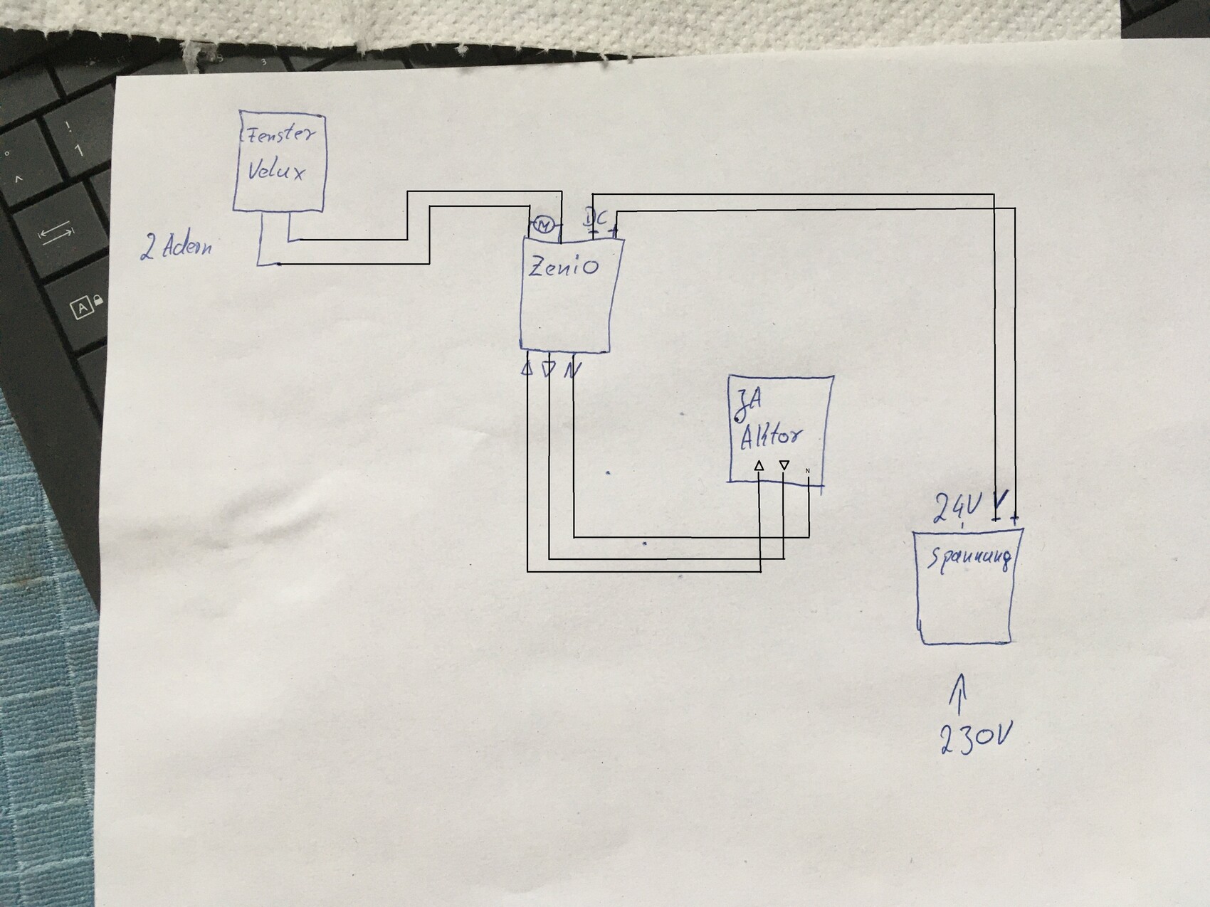 Habe Blau und Braun am Rollo angeschlossen. Nehme jedoch am UV blau und schwarz