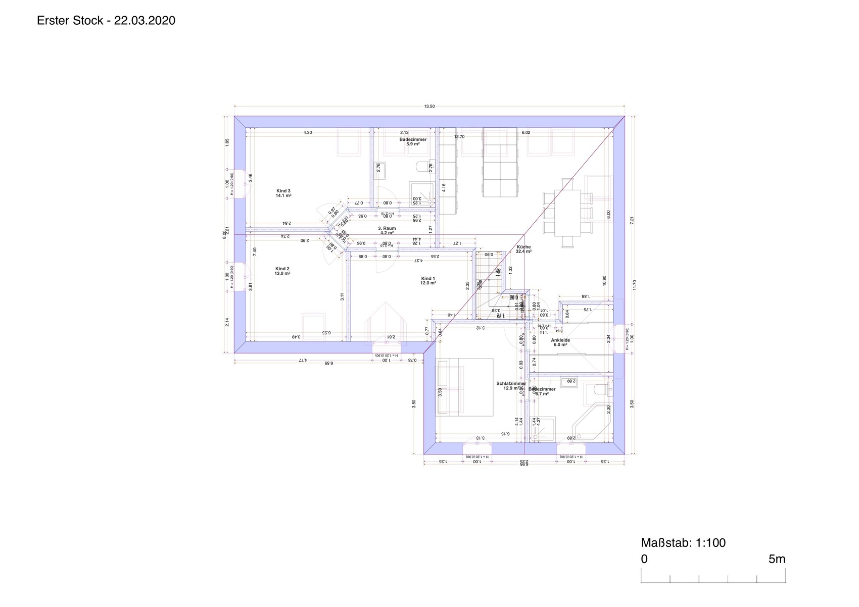 Büro wäre dann in den Spitzboden gewandert, ich hab einen Kniestock von 115 und 50 bzw 55 Grad Dachneigung, damit ist man ganz knapp unter den 9m.