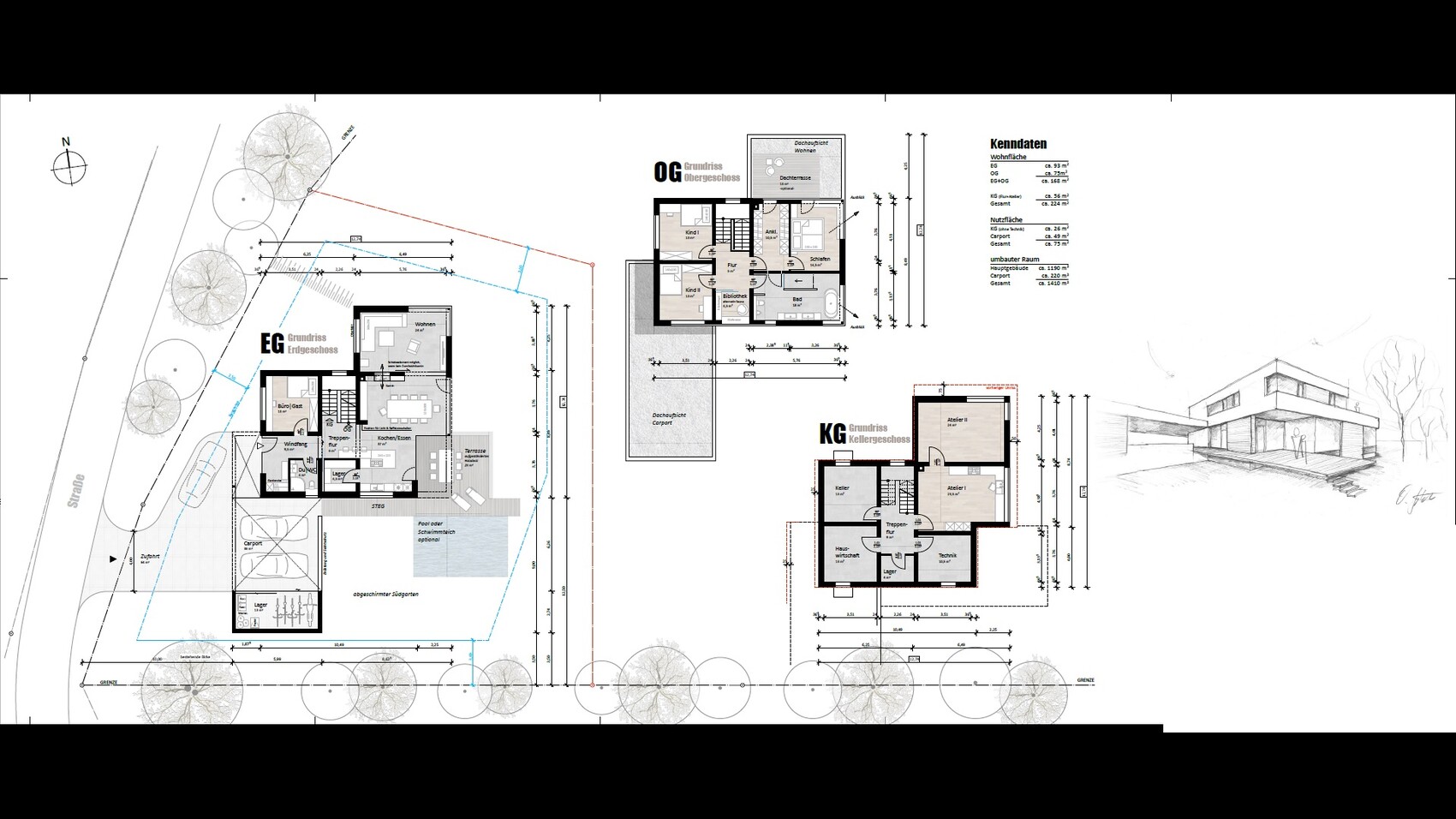 Ich wollte mal eine Skizze machen, aber ohne Grundstücks-/Baufenster-Maße keine Skizze. Sorry.