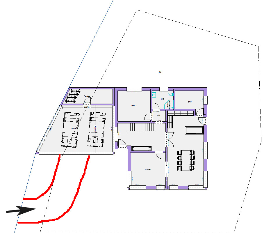 Also: Auffahrt Grundstück unten planlinks wäre erlaubt. Mittig planlinks nicht.., wo ist Westen?