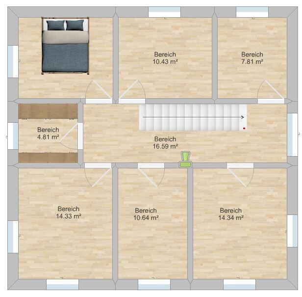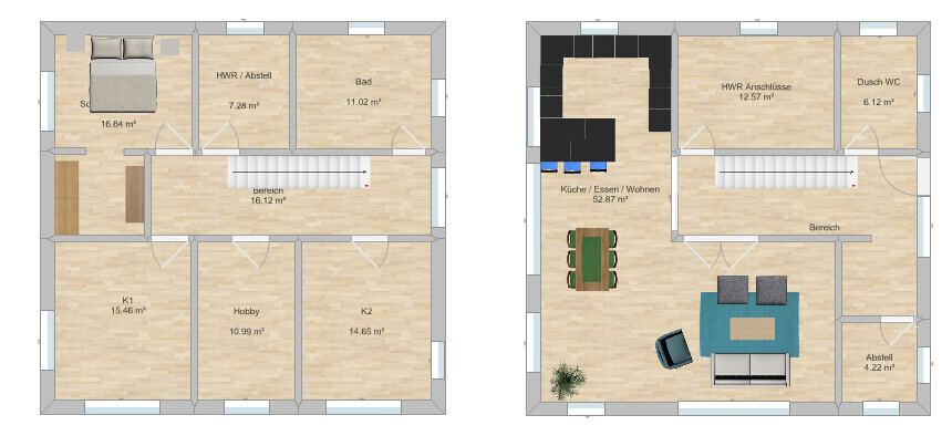 Bad und Hauswirtschaftsraum bin ich bei dir. Bei der Ankleide verliert man halt Stellfläche.