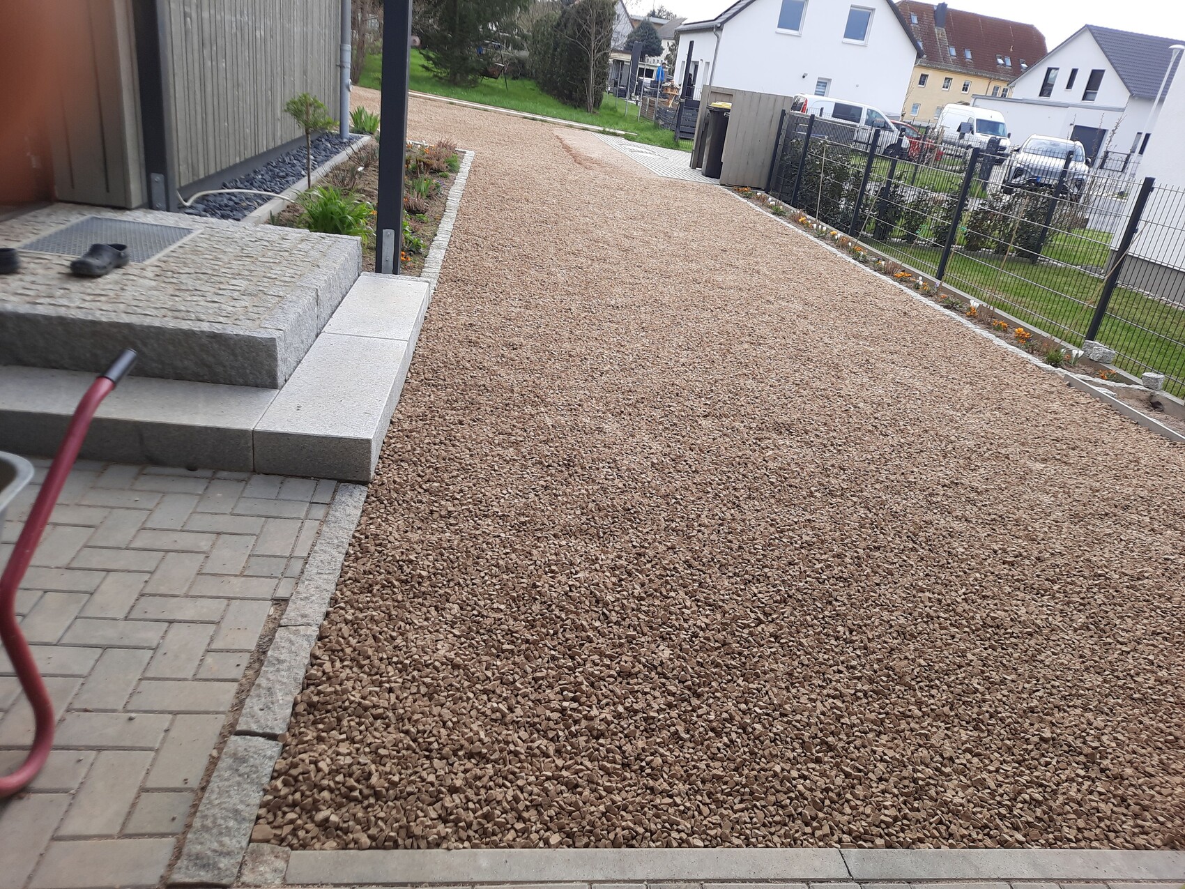 Wir haben zwei E-Autos und finden diese neue Einfahrt richtig gut, auch weil wir nicht pflastern wollten und es in dem hellbraunen Farbton schick aussieht. Der Laster hat es abgekippt und wir haben es mit der Schubkarre ca. 7cm stark verteilt und danach mit der Rüttelplatte drüber. Die Benutzung empfinden wir als problemlos und würden unbedingt wieder so machen, zudem kostete das ein paar Hundert Euro für eine Riesenfläche.
