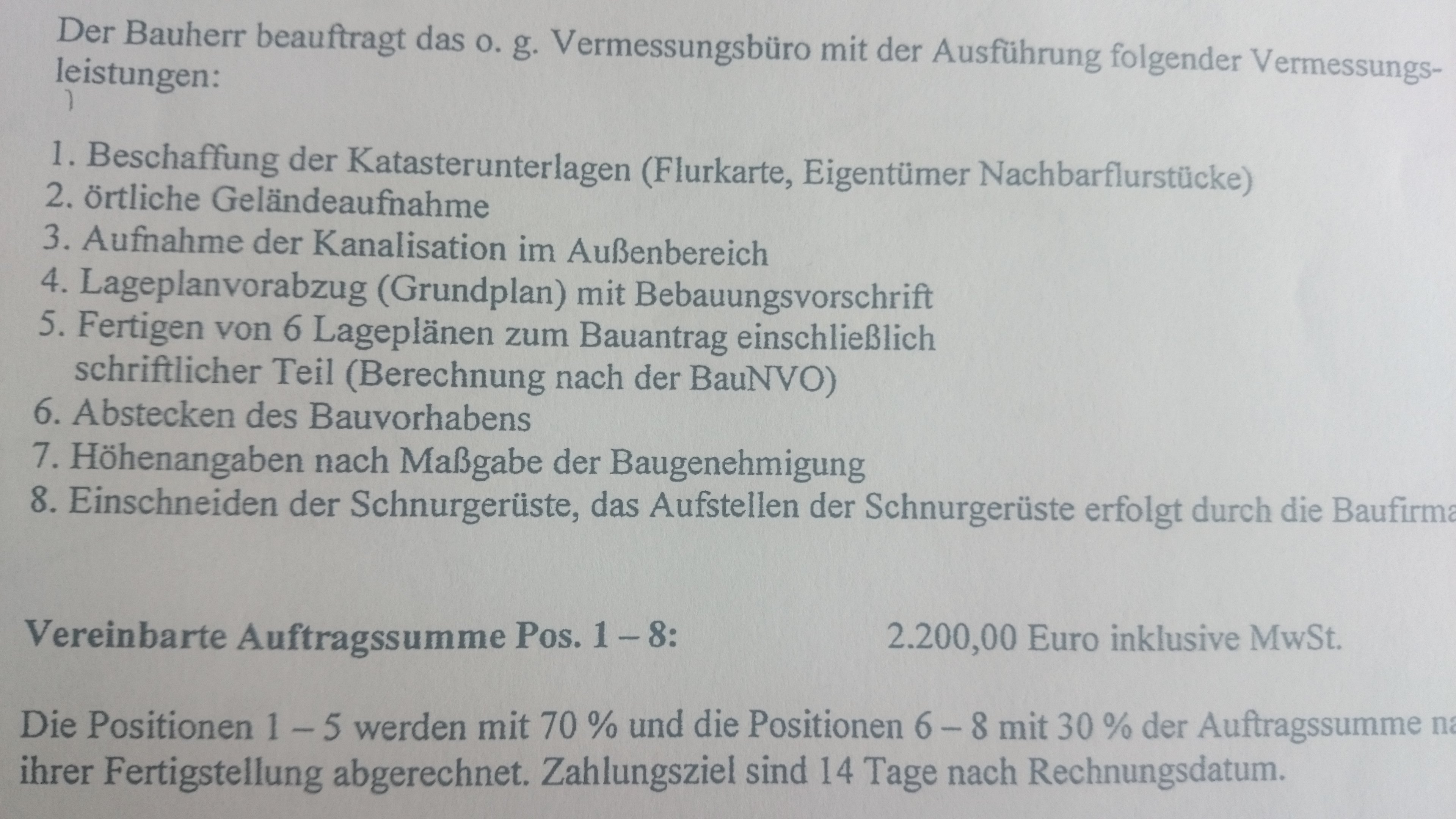 dann kann die Absteckung eben nicht jeder dahergelaufene Polier machen. Ein Vermessungsbüro bekommt die Koordinaten der Grenzpunkte und braucht die nicht in der Örtlichkeit.