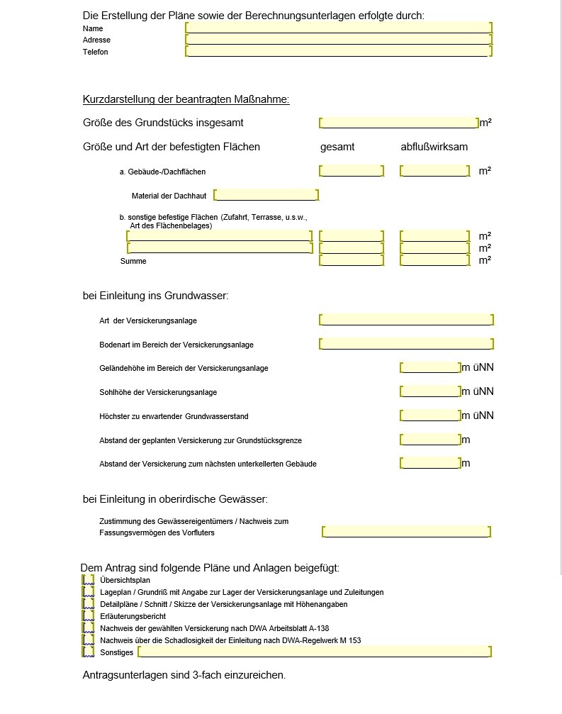 in ihrem Antrag müssen Sie angeben wie Sie sämtliche versiegelten Flächen entwässern, dazu gehören auch Gehwege, Terrassen und Parkflächen.