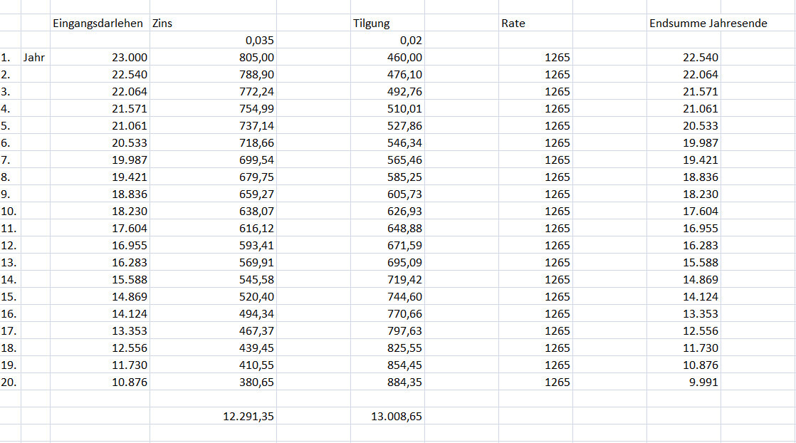 Wen die auch bei 3-4%/a liegt, gleicht sich das aus.Deine 9013€ stimmen aber bei 2% Tilgung und 3,5% Hypothekenzins nicht, bei einer festen Rate kommen ca. 12.300€ raus.