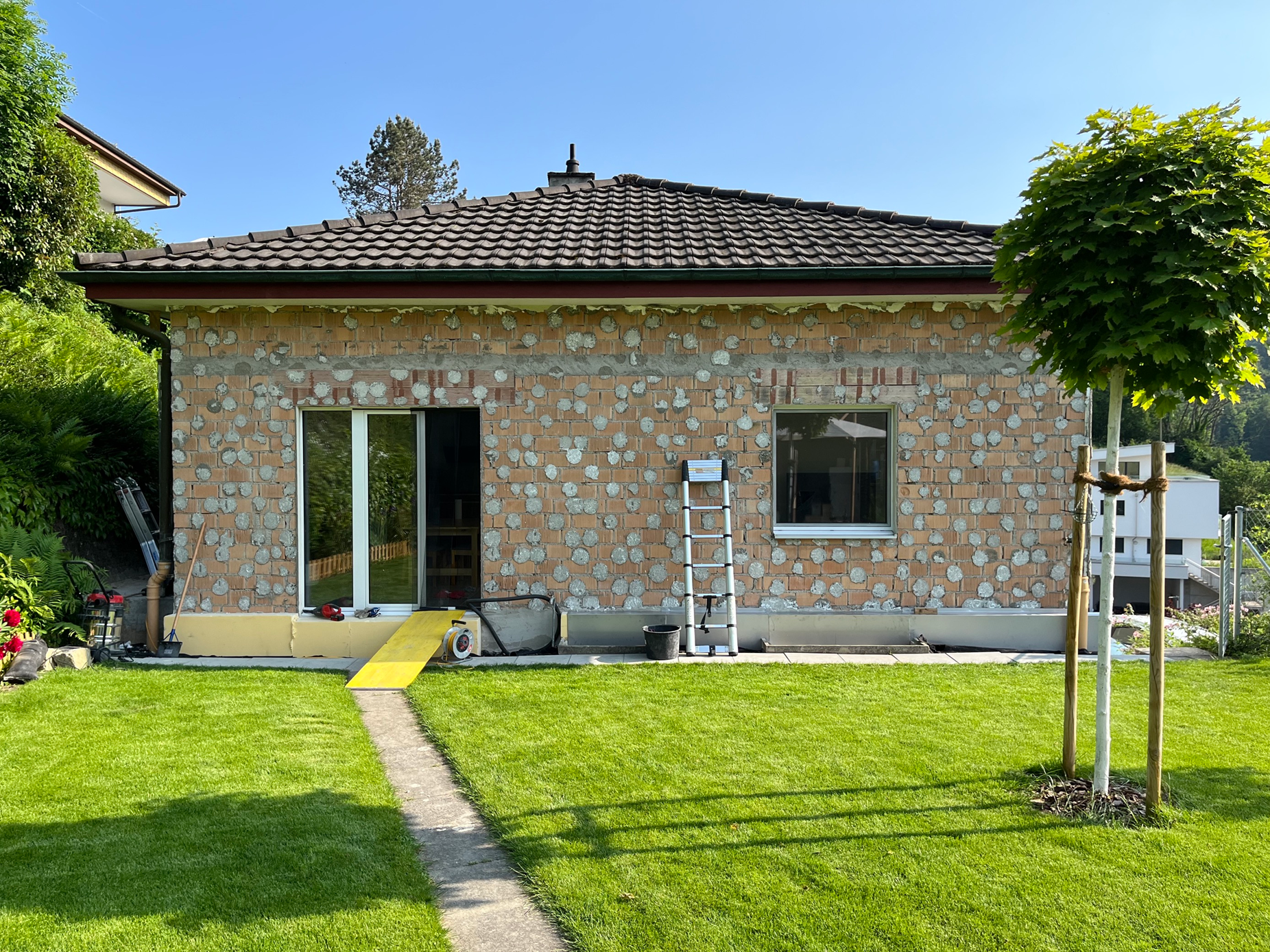 Kaum zu glauben, bin wieder da aber ohne Fassade. Ich habe schon alles eingegeben und Auftrag erteilt, letzte Woche hat mich der beauftragte Zimmermann versetzt, mir noch den Stummel vor die Füsse geschmissen, mündlich gekündigt und weg war er. Jetzt stehe ich mit abgedeckten Wänden aber immerhin XPS Sockeldämmung in Chromstahl verpackt (18 cm) da. Mit etwas Glück bekomme ich 2-3 Offerten, die Varianten unterscheiden sich: Einblasdämmung auf Holzständern, Holzfaserplatte, Hinterlüftung und dann Lattung mit Faserzement (Cembrit, Eternit Paneele), Lärche oder Aluminium Siding (teuer aber pflegeleicht). Alternativ wird Steinwolle zum Einklemmen in Holz-UK oder Mineralwolle (Glas oder Steinwolle) auf Aluminium-UK als Dämmung. Ich tendiere zur Einblasdämmung, Glaswolle ist mir irgendwie unsympathisch. Die Laibungen sind aber ein Mega-Problem, denn ich habe keinen Platz. Hat jemand Zellulose in die VHF eingeblasen und kann davon berichten (wie es nach Jahren ist). Danke