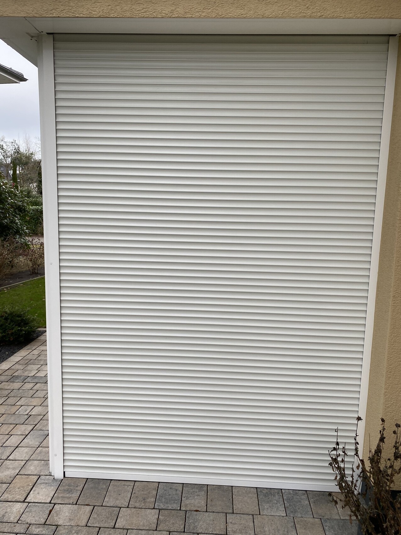 Wir haben 2012 gebaut und an allen Fenstern elektrische Außenrollladen in Aluminium Weiß.