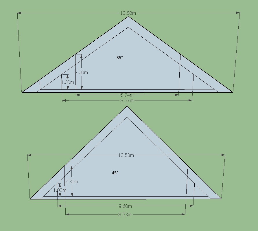 Ja, das Bild ist schwer zu verstehen. Wo sind denn die 12m vom EG? Warum ist das Giebeldreieck bei 35° breiter als bei 45°?