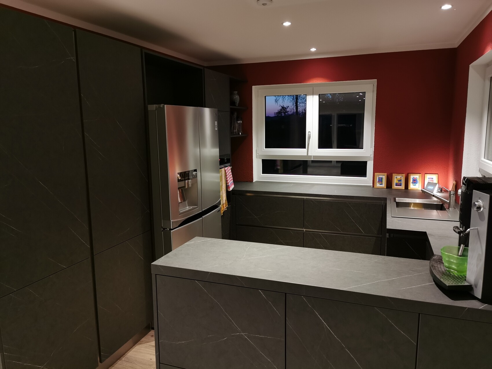 Unser Küchenbauer hat uns vorgestern davon abgeraten, unseren Samsung Side-by-Side in die eigentlichen Küchenmöbel zu integrieren. Sähe in 100 % der Fälle doof aus, weil er eben heraus stehen muss, um die Türen aufzumachen. Alternativ könnte man ihn, sofern man eine Wand frei hat, per Trockenbau in diese Wand integrieren. Das sieht halbwegs brauchbar aus, aber wenn mal was mit dem Teil ist und der nächste Kühlschrank nicht mehr exakt passt, reißt man die Wand auf. Wobei das immer noch günstiger wäre, als die Küchenzeilen zu ändern. Unser Samsung wandert daher wohl als dezenter Bierkühler in die Speisekammer und wir bleiben bei (integrierten) Standardmaßen.