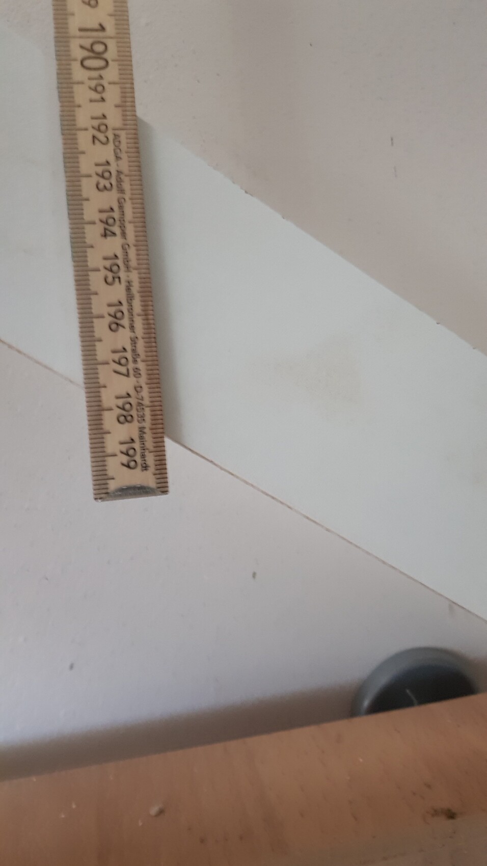 Es werden so 197cm sein von der konstruierten Linie zur Deckenkante, stelle ich den Gliedermaßstab auf die dritte Treppenstufenvorderkante, messe ich 190cm zur ca. 5-10cm entfernten Deckenkante.