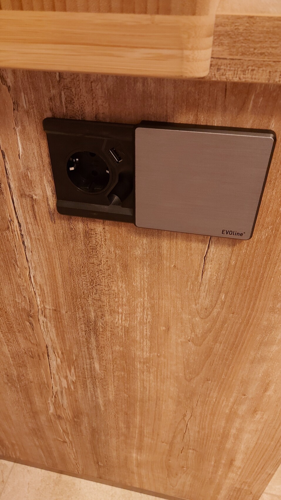 So haben wir in einem Schrank (unschön aber egal) einfach drei Aufputzdosen angeschraubt und fertigDas haben wir an der Seite von außen, allerdings nur für den Mixer beim Kuchen backen, bzw den StaubsaugerH