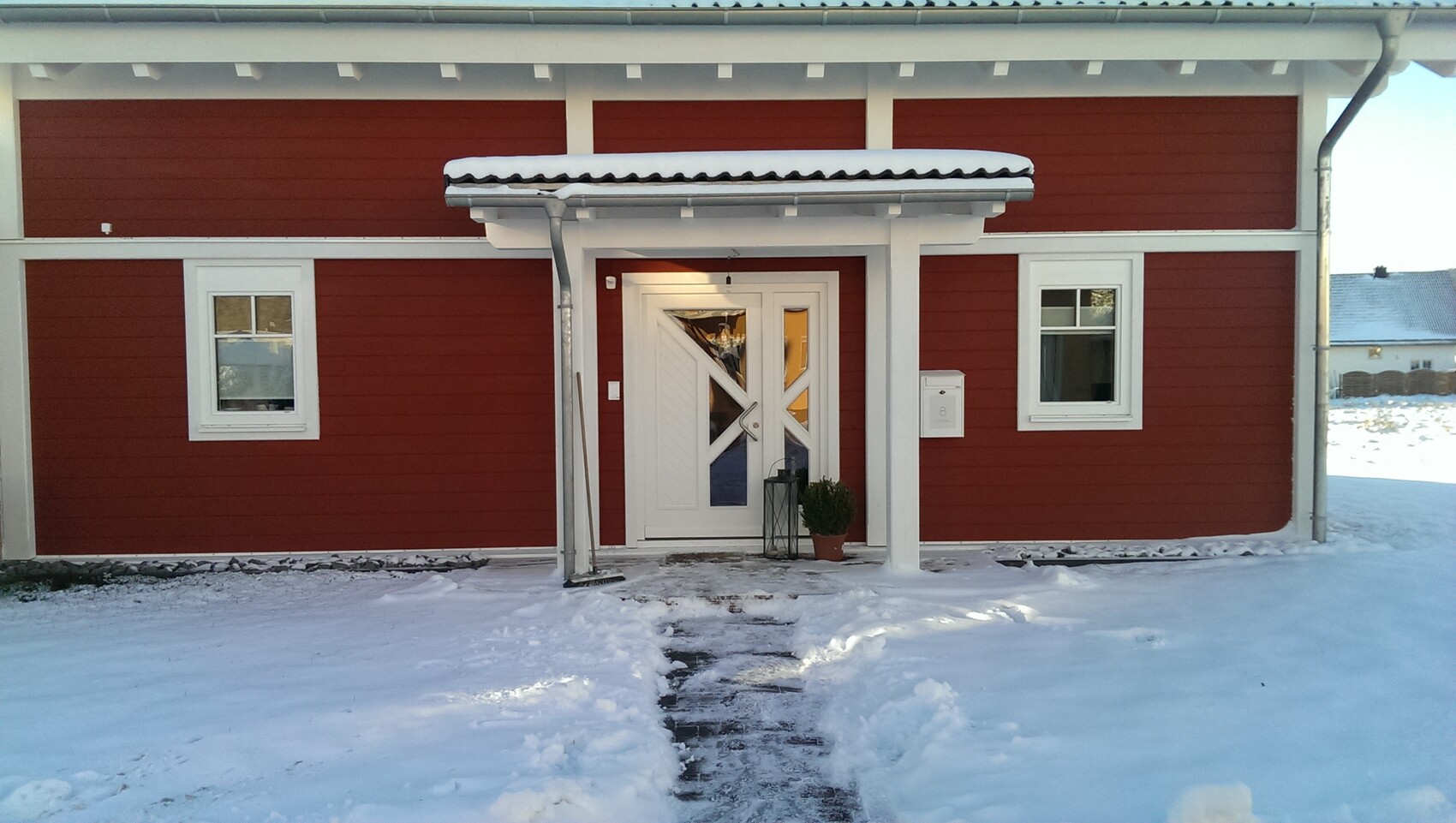 wir haben kein Vordach am Eingang sondern eine über Eck ins Haus hinein gebaute Nische, die 94 cm tief ist.