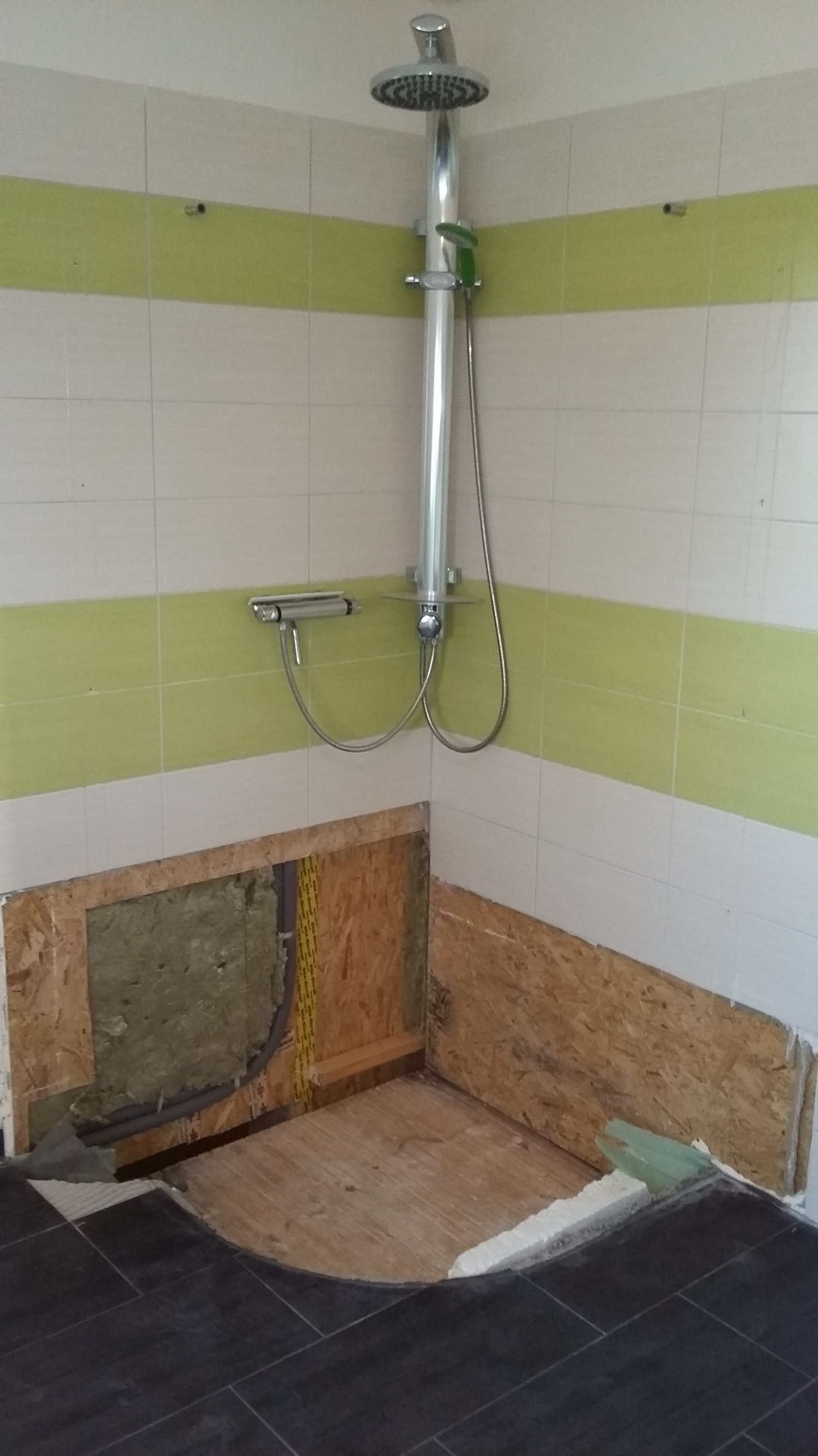 Hätte ich geahnt dass es bei uns so viel Probleme gibt, hätte ich eine komplett geschlossene Duschkabine (also eine Dusche in einem Stück quasi wie eine Telefonzelle) eingebaut, da gibt es nur Anschlüsse fürs Wasser und einen Anschluss für den Ablauf.