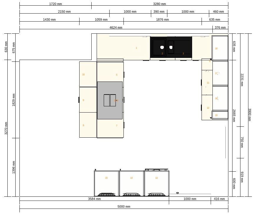 Besser ist es, die Küchentür nach planlinks zu verschieben und die Schränke in die Küche zu integrieren.Bin ich voll und ganz bei dir. Die Küche ist tatsächlich ein "erster Schuss" gewesen. Die drei großen Schränke (für Herd/Mirco-Kombo, Kühlschrank und "anderer" großer Schrank).