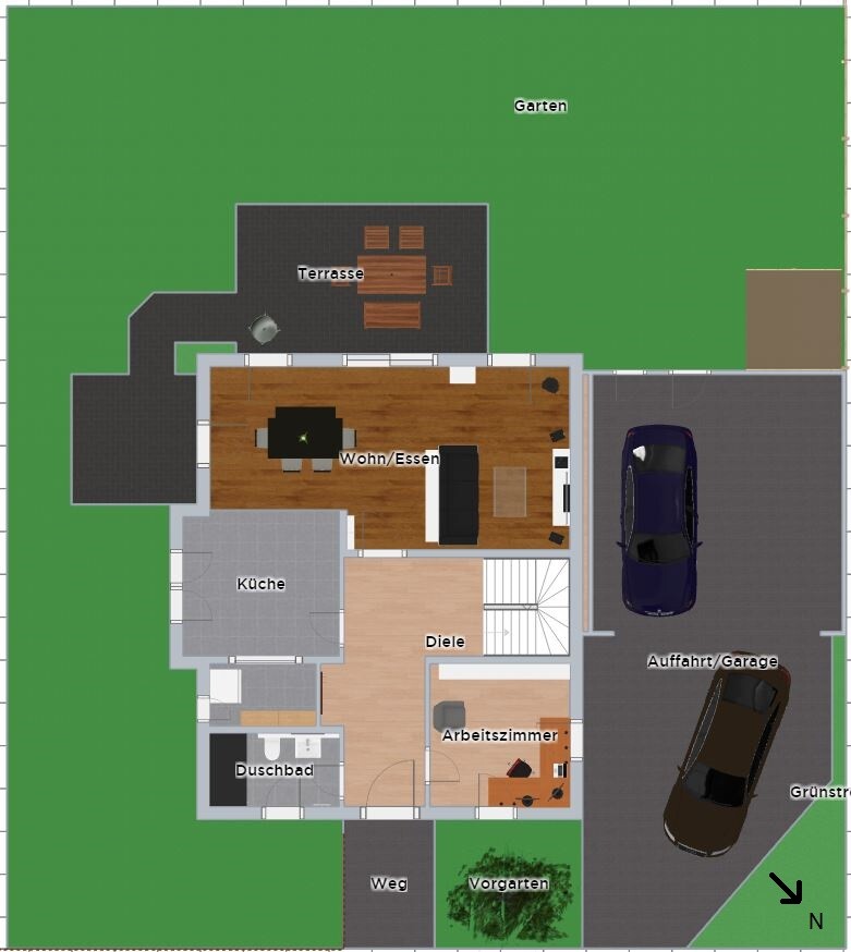 Als nächste kommt das EG (als Attachement auch noch mit Position auf dem Grundstück und einer Idee zur Terrassennutzung):