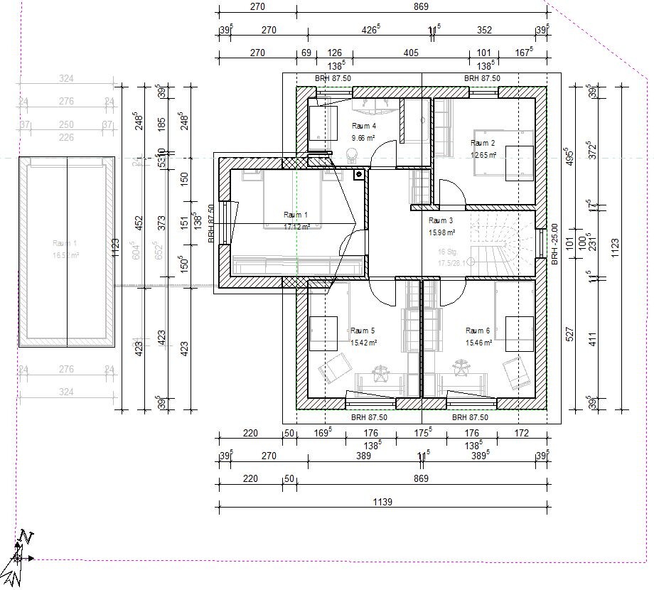 Die Seite mit Werkstatt und Abstellraum ist erst mal nur als fixe Idee. In den HAR kommt neben Heizung und Stromkasten noch ein 19 Zoll Schrank für die Netzwerk und SAT Verkabelung. Dazu sollen noch weitere Sachen wie Laserdrucker eventuell hier mit rein.