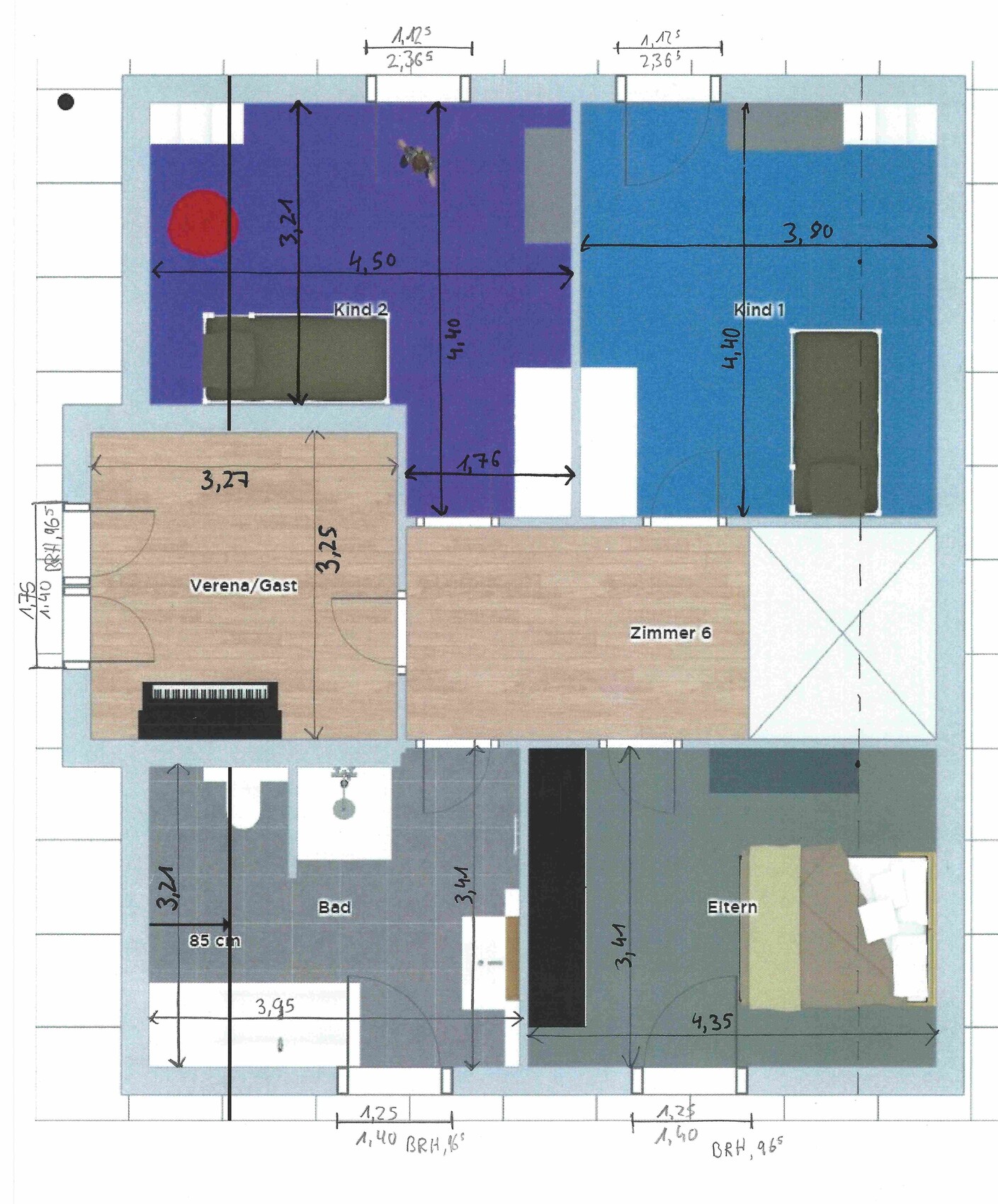 Kommen wir nun zu meinen "schweren" Obergeschoss...nach wie vor bleiben wir bei den 4 Zimmern. Ich habe es neulich bei einer Besichtigung das ganze umgebaut auf 3 Schlafzimmer gesehen, und das sah wirklich nicht gut aus.